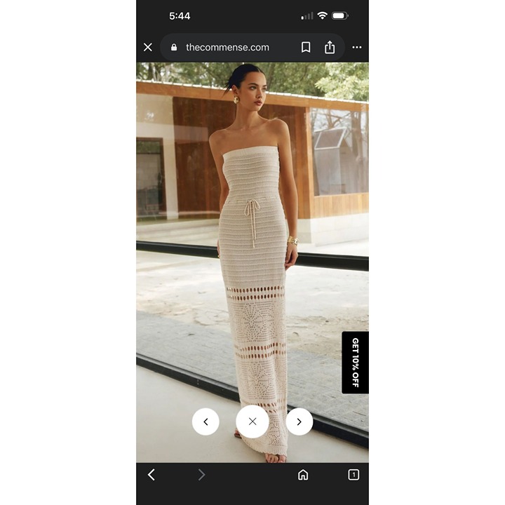 This elegant crochet maxi dress by Commense features a detachable off-shoulder top, allowing for versatile styling options. Crafted from soft knit fabric, it provides a comfortable yet stylish fit. The dress is ideal for warm weather occasions, offering both sophistication and breathability.